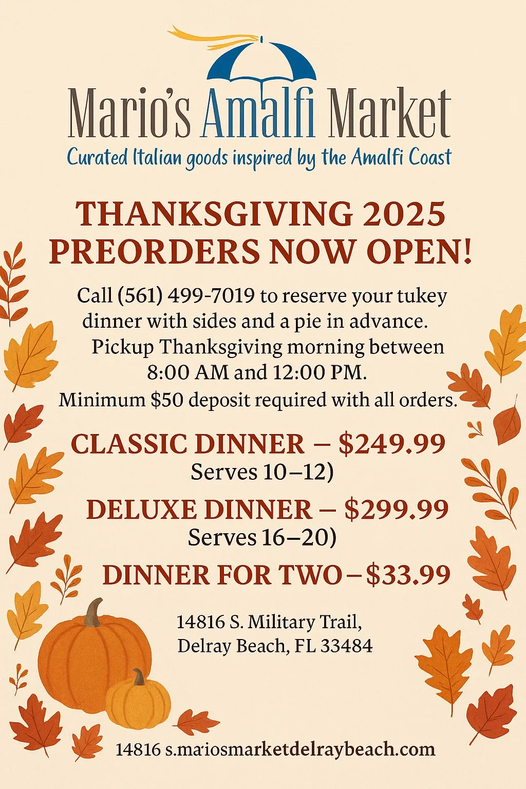 Since 1987, Mario’s Market has been a beloved part of the Delray Beach community, offering the authentic taste and tradition of a true Italian market. Rooted in our Italian heritage, we take pride in sharing not just exceptional food, but also warm hospitality.